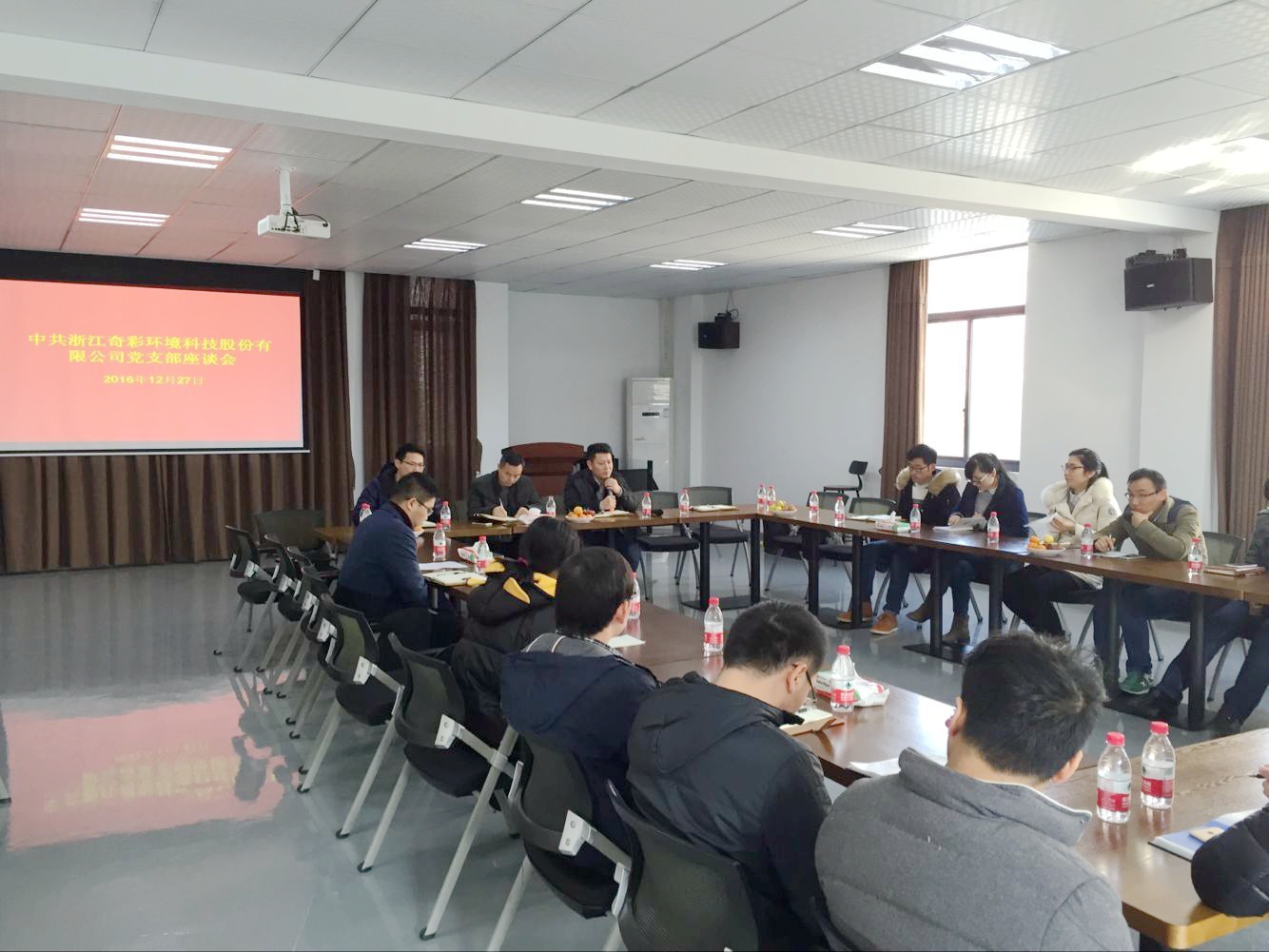 2016年12月27日奇彩環境黨支部就黨員在公司改革中的作用開展座談交流。公司總經理張云保、總工吳勇前、支部書記沈源峰及支部全體黨員出席。
